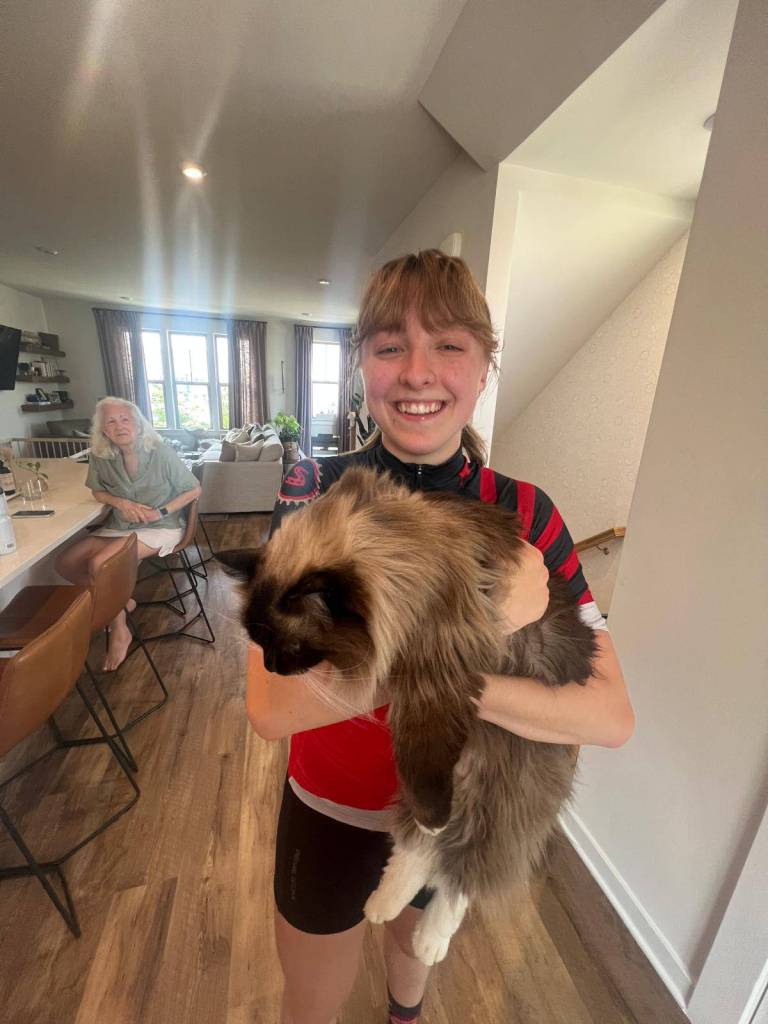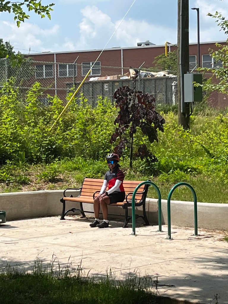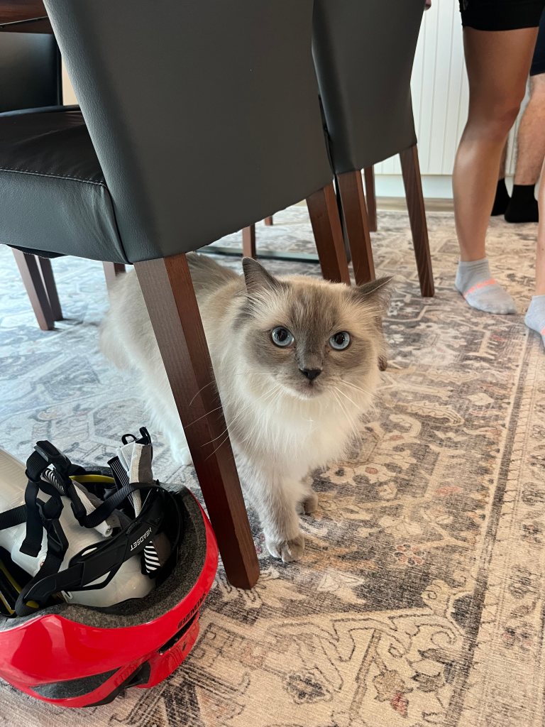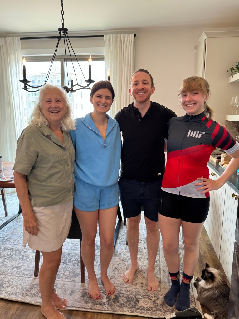 eventually we made it to our first rest stop at my 2nd cousin claire’s house! my mom reached out a few days before we set off to see if any of her side of the family on the east coast was along our route, and claire and her husband miles ended up being literally right off of the trial we were taking. nice! i haven’t seen them since…maybe ever, but definitely since i was too little to remember anything. my great aunt bubby also decided to stop by, and we all enjoyed the company of my family, their LARGE and FLUFFY and so friendly and cute cats moose and noodle, and the bagels and fruit they set out for us. the water and electrolyte refills were also MUCH appreciated. if the fam is reading this, thank you so much!!!!! will be back soon to visit again 😇