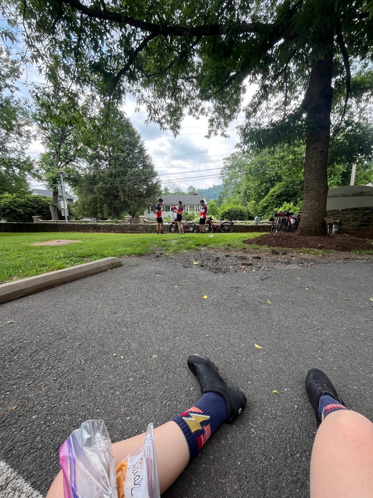 the 1st ~30 miles were absolutely WONDERFUL. the team was cruising down the flats, enjoying the virginia scenery. as a las vegas native, i never get sick of greenery. there were also sightings of cute deer, cool birds, and…a singular snake. yikes.