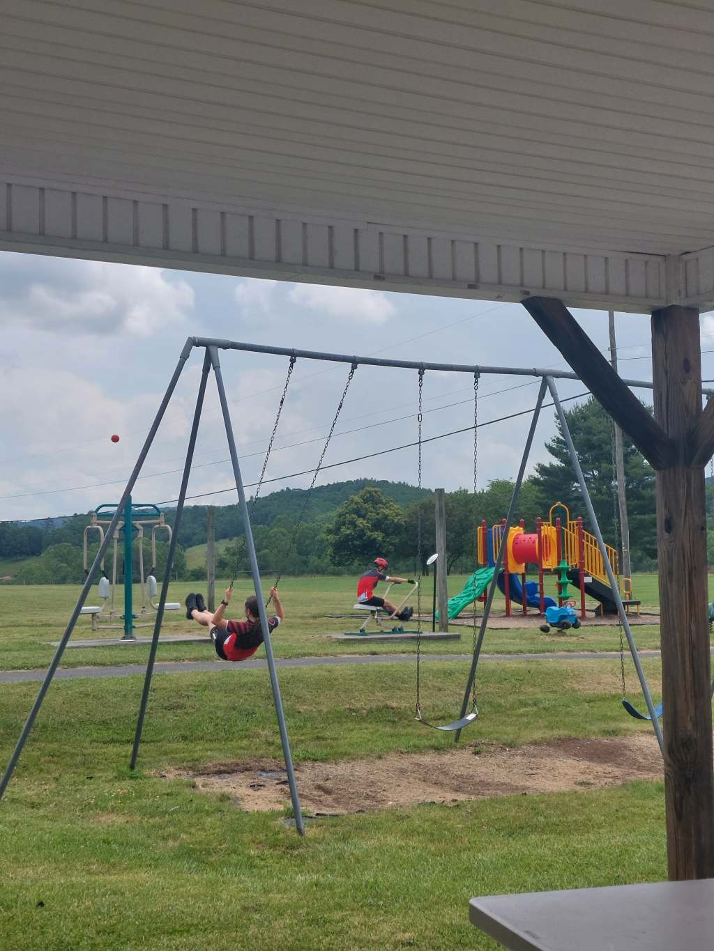 Charles getting in that exercise and Greta on the swing.