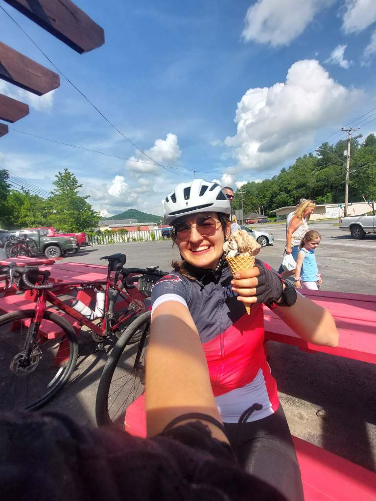 Soon after entering Tazewell I noticed a sign for ice cream and contemplated stopping, BUT THEN I noticed the some Spokies at the ice cream spot! Telepathy! Of course, I pulled over and got two cold, sweet and glorious scoops of ice cream (pictured below).