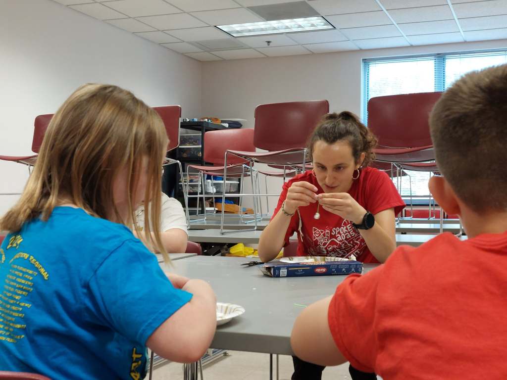 Our host Sherry cooked us a tasty casserole for breakfast, but Sarah, my bottle rockets workshop partner, thought her nut allergy was acting up even though the food didn’t have nuts. She took some Benadryl to prevent an allergic reaction, but it also made her super drowsy as a result. This all meant that Sarah was also out of the picture for bottle rockets and I would be running it solo. I was a little worried. This was going to be my first learning festival without kids from a correctional facility (we didn’t do an official bottle rockets workshop in Tazewell), and there was a variety of kids of all sorts of ages from kindergarten to 9th grade that we had to attempt to cater to in separate groups. I didn’t think our curriculum was advanced enough for the older kids, so finding out I had to run it solo all of a sudden gave me some anxiety.