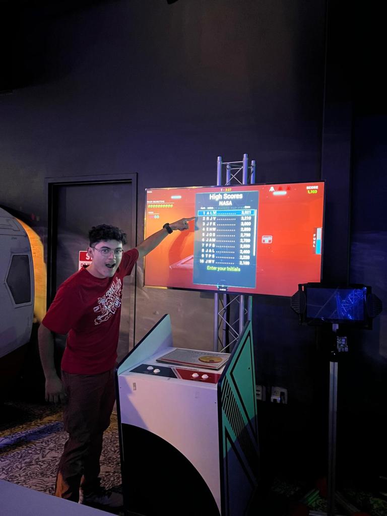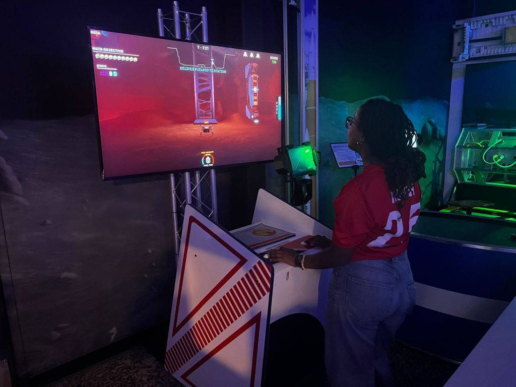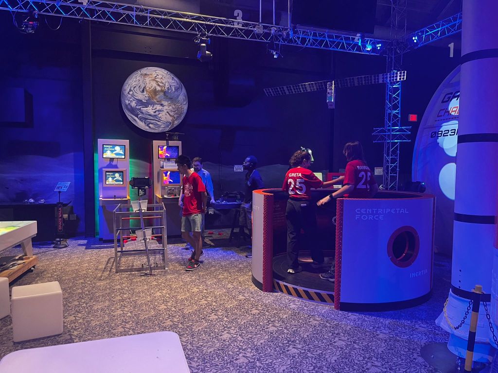 Afterwards, they took us to an exhibit space where they had a 1/10 scale model of a rocket and a bunch of cool demos and games for kids to check out. We spent way too much time having fun in this space.