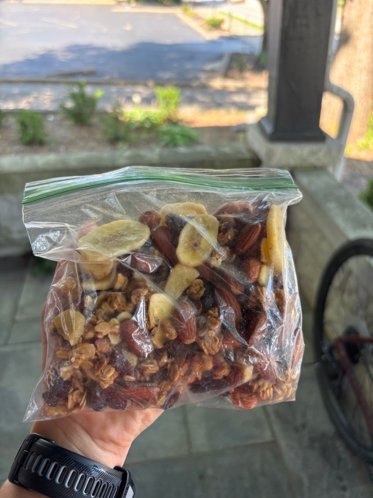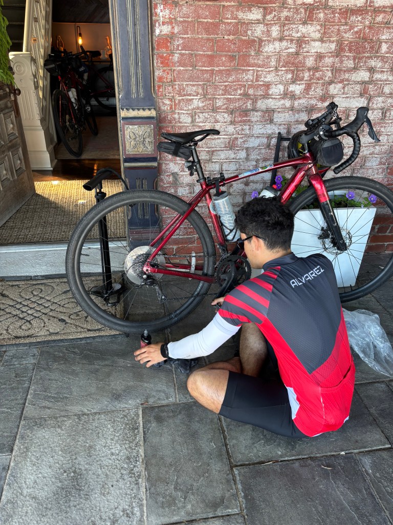 By this point in the trip, the morning tasks were routine. I readied my snack bag, lubed my chain, and pumped my tires. Filled up my water bottles (one with water and one with electrolytes), curated my Spotify queue, slathered on my sunscreen. Order doesn’t matter. What matters is that it’s go time.