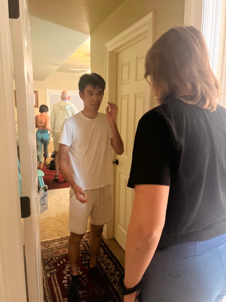 With these thoughts swirling around in my head and music from The Greatest Showman in my ears, I pulled up to the beautiful home of Greta’s grandparents. Ruth had already unloaded the car. I finally saw the rest of my team and realized that I missed them today. David and Kathy (Greta’s grandparents) served delicious food for snacks and dinner. We ate the sweetest watermelon of the trip and tortillas with amazing toppings while watching the sunset from the balcony of their beautiful home. I also taught Charles a card game (Star Realms) and lost embarrassingly twice.