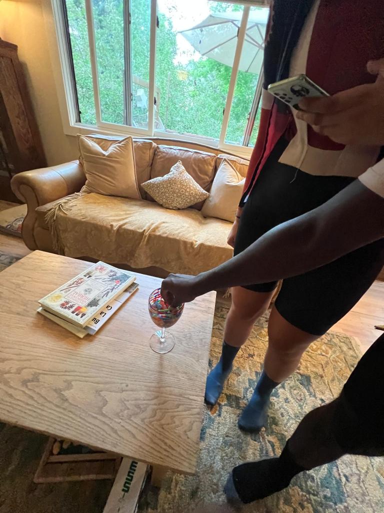 Greta and I team up against Charles and Joseph. Ramona spectates. The rules are that a bean bag on the board is 1 point, and a bean bag in the hole is 3. The winner is the first to get 21, and opposing teams’ scores cancel each other out each round (e.g. if I get bean bag in hole but Joseph gets bean bag on board, the score is 2-0 not 3-1). Charles and Greta are standing across from me and Joseph. My memory is a bit foggy, but here is my best recollection of the events that took place:
