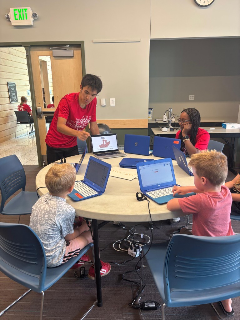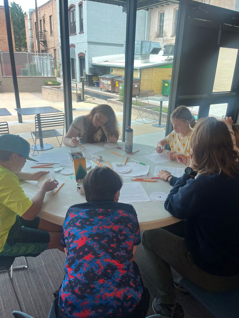 We arrived in the Garfield County Public Library in Glenwood Springs in a timely fashion and discovered that we would all be teaching in the same room! Cons: students are distracted by other workshops, and noise can be overwhelming. Pros: Spokies get to see each other run workshops, which builds camaraderie and togetherness. This is our 7th learning festival to date, and everything just ran as smooth as butter. Signups happened, groups were created, and we even tried a new rotation today due to Greta’s suggestion and Charles’ support. The small group size made the rotation work well, and I taught one less session! During my break, I sabotaged joined other Spokies’ workshops. In Ramona’s workshop, I made a Caesar cipher wheel and finished the cipher sheet (I wasn’t sure I could do it). In Greta’s workshop, I made oobleck for the first time and punched it. I was also regaled by Ishaq’s Tour de France talk and became interested in the race. We watched some of the highlight recap together, and I became more educated about the world of professional cycling.