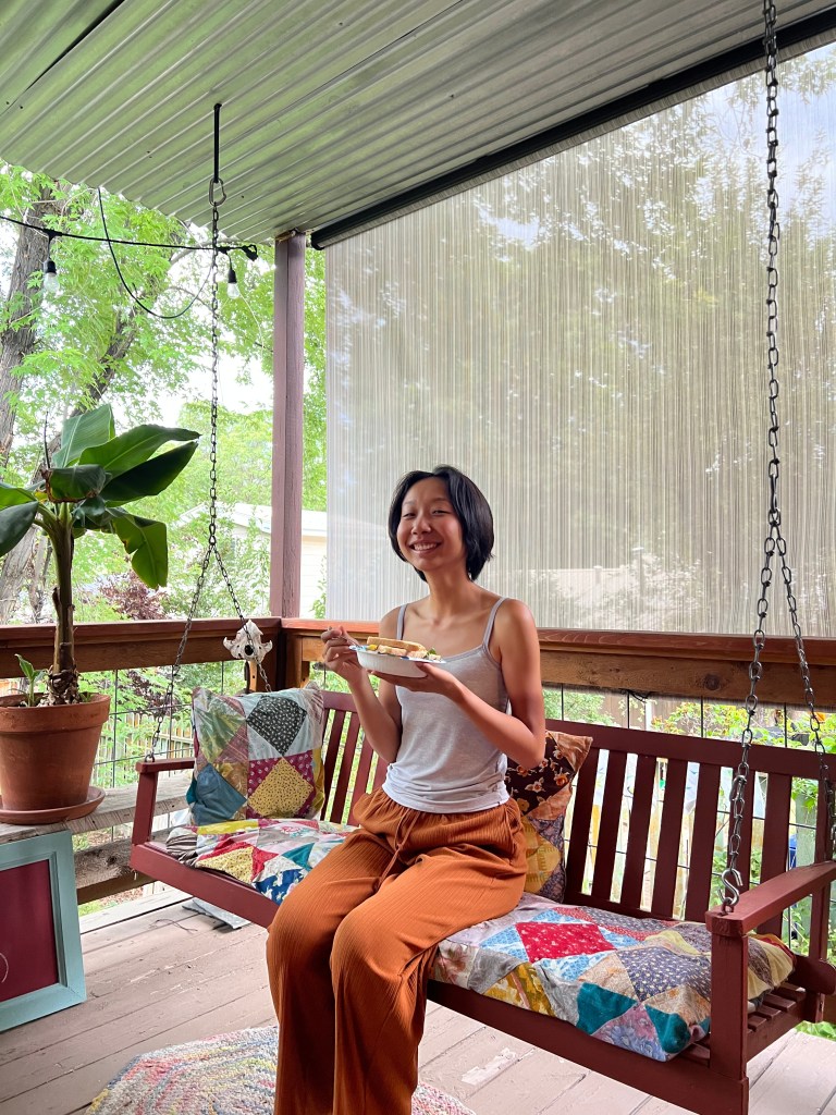 After the festival, Ishaq, Greta, Sarah, and I ditched the rest of the Spokies and headed back to Barb and Lindsey’s place, each with our own goals of napping, snacking, chilling, and blogging. I am in awe of Barb’s beautiful home and decorations. Soon, more of Greta’s relatives showed up, and Greta held a baby for the second time on this trip! I could never. We had the most delicious lentil coconut curry topped with mango chunks (courtesy of my amazing knife skills). This dinner was thanks to Barb’s hard work. During dinner, Joseph and Ishaq regaled me with Dragon Ball Z lore. Honestly, the lore was so ridiculous that I don’t know if they are lying to me or not. But, the creativity behind characters born in a no longer existing vegetable planet makes me believe that they didn’t make the story up.