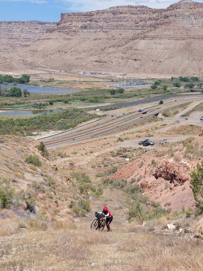 Then we arrived at a rest stop by the Colorado River and what I think was Corn lake, where we took a dip first in the lake and then in the river for the full experience. The current in the Colorado really is powerful, as we have found out on multiple occasions. But it was also more refreshing than the lake. After this we were almost exclusively on bike paths and continued so up until Grand Junction.