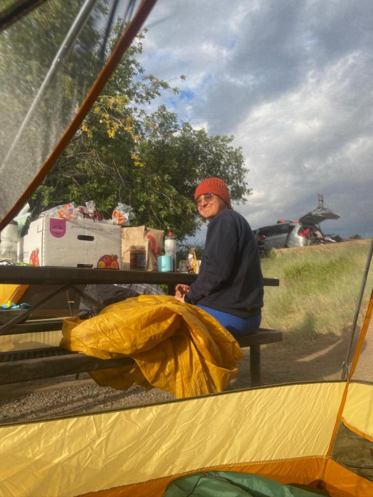 I woke up after Ishaq but before everyone else our cosy campsite overlooking the Vega Reservoir. I biked to the bathroom and saw a bunch of geese going for their morning swim in the reservoir. I sat there for a bit. The sun kissed mountains, the geese in the water and me. I couldn’t imagine needing anything else.