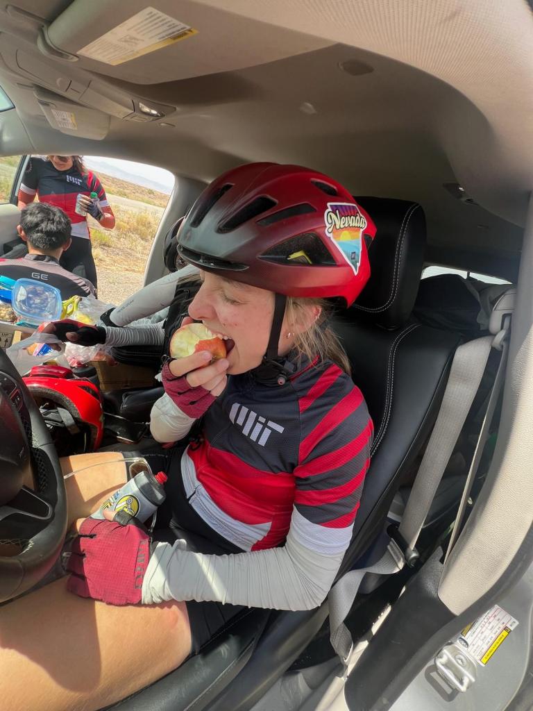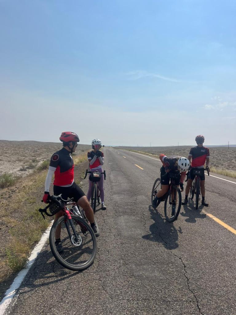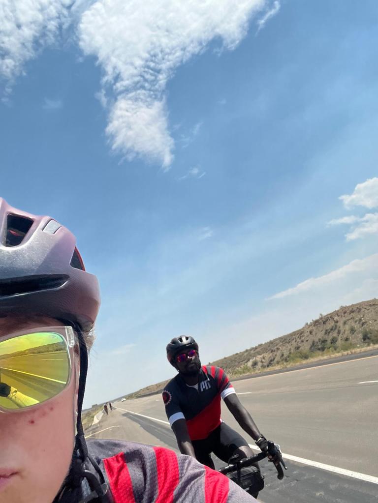 honestly, legs 7-9 were in short succession, and towards the end of this long, hot, and quite eventful dayā¦so, a bit of a blur. what i definitely remember though was the views FINALLY starting to improve, changing pretty quickly from barren, monochromatic desserts to towering, colorful canyons. surprisingly (to some people), the desert can actually be quite spectacular and beautiful! besides maybe charles, iām the only one who has seen views like this, andāunlike anyoneāiāve lived in them. so, it was a treat to get to see my teammates experience the stunning sights for the first time: it made me feel a bit of fresh wonder and awe for the yet increasingly familiar terrain of the southwest š§” even though the views weāre wonderful, it was hard to ignore our increasingly declining physical conditions: things weāre starting to hurt more, water was running low, hunger (for a real meal) was growing exponentially, and there was still about 20-30 miles to go. however, the road goes on, and so do we.Ā
