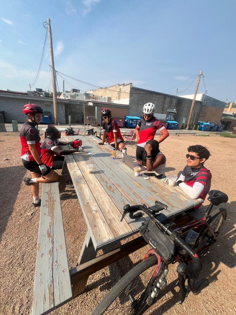 leg 1 was a tame ride out of grand junction mostly on bike paths far from the busy roads. i usually put on music when iām alone, but this morning i decided to listen to the world around me instead (as well as save my battery for the long day). i passed a sign at the entrance to the city and quickly snapped a photo for the blog and my old high school pole vault coach: she went to school and vaulted for the college in grand junction! i got the rare chance on a rest day in colorado springs to meet up with her (and her husband) and catch up for the first time since she moved away last july. i truly couldnāt have made it to MIT without herāif youāre reading this, gabby, it was SO nice to see you again! (and thank you jason for helping coordinate the surprise!) š joseph and tian eventually catch up to me, and we make it to the 1st rest stop of the dayāa cafe (my favorite)! after my order got messed up (and fixed, even though i was nervous to ask for a redoā¦) i walked out with my usual iced chai, a strawberry cheesecake cookie, and an extra latte, which ended up being taken by ruth, who was hyper for the rest of the day. i think the energy on such a long day was appreciated, though :))