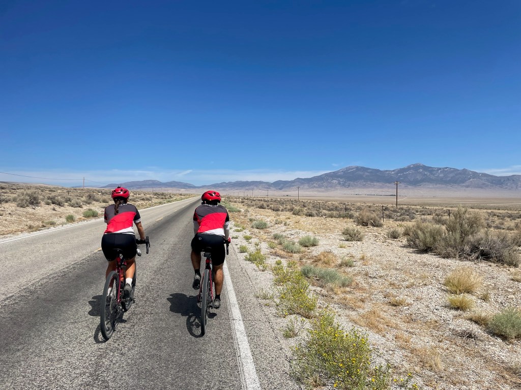 The biking Spokies had a bit of a staggered start today. Ruth and Ramona left early, per usual. Greta, Joseph, and Sarah, our resident coffee stop fiends, ate a lighter breakfast and went for coffee at the town’s only café (also Baker, Nevada’s general store and inn) right around the corner. This part of Highway 50 in Nevada is desolate. Not a single viable coffee shop rest stop on the route until our final destination.