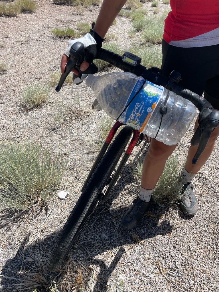 At the “rest stop,” we found the water jug tucked under a bush. We snacked and refilled our waters. I took a 20 minute nap under the beaming sun. When we were ready to leave, we realized we had a problem — the water jug meant Tian and Ishaq would have to come back for it if we didn’t want to litter. We all tinkered with how to bring it along with us until Joseph came up with a fantastic solution:
