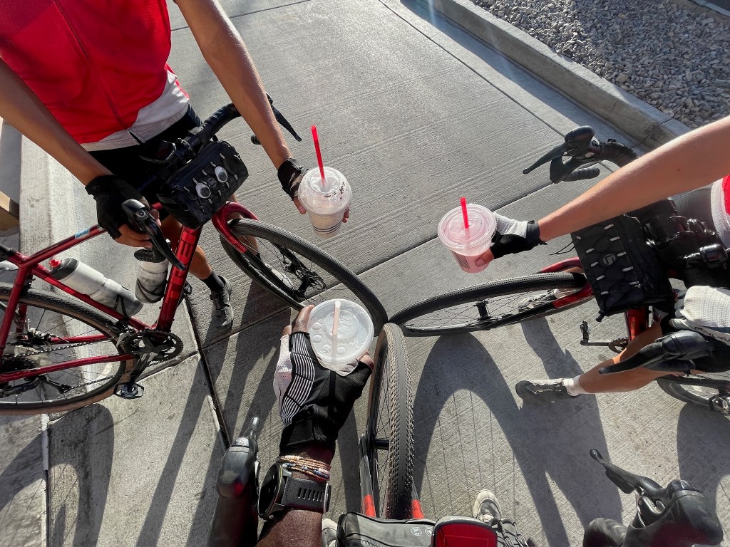 As we arrived in Ely, Nevada, ready to put this cursed day behind us, Greta, Ishaq, and I decided to celebrate. We thought it’d be fun to take our bikes through the McDonald’s drive-thru and get McFlurries. But their ice cream machine was broken. Classic Mickey D’s. Ishaq got an iced lemonade. We hit the Carl Jr’s drive-thru next. I got a cookies and cream milkshake, which was simply heavenly. Vibes were great.