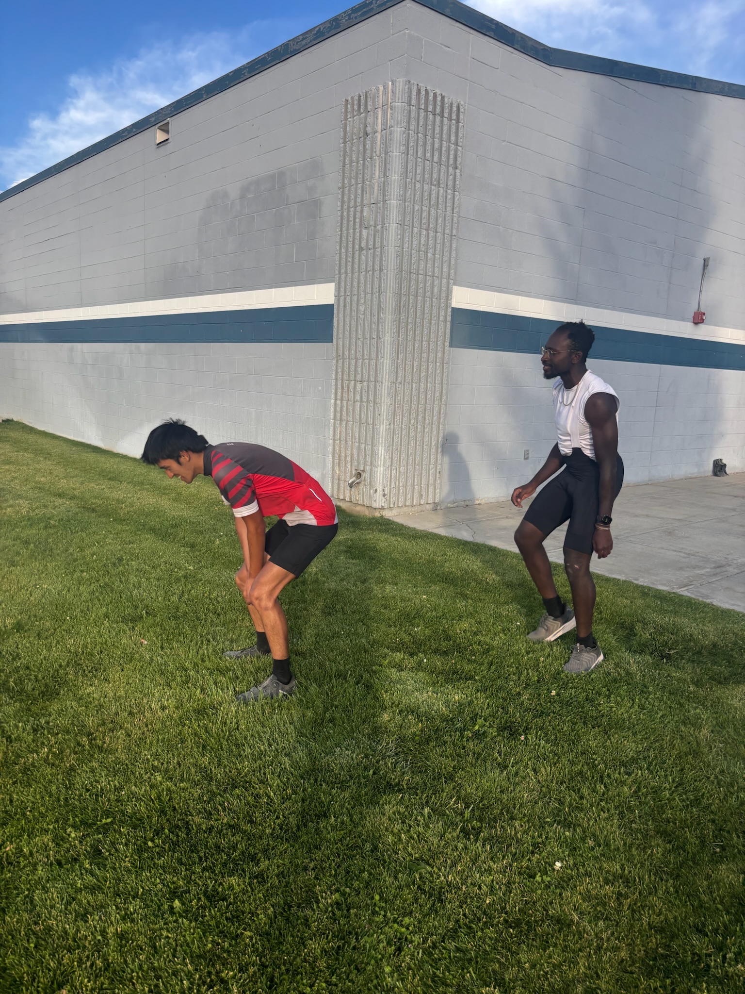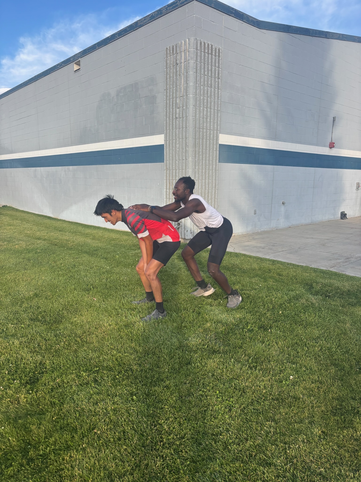 There was a pole vault pole in the cafeteria, so I asked Sarah to show us proper pole vaulting form. There wasn’t an actual pit, so a few of us gave it a shot on the grass outside, rather unsuccessfully. Ishaq and I also took turns hurdling each other (pinky promise that’s what’s going on here)