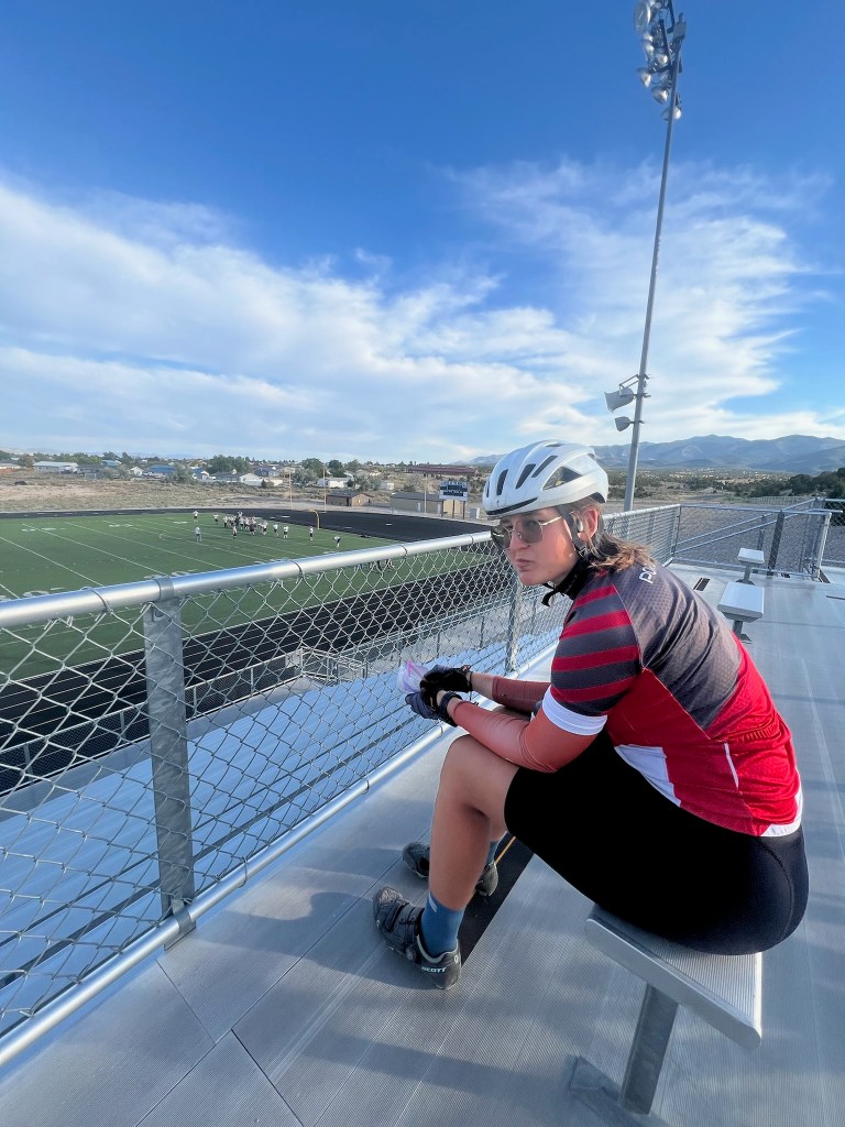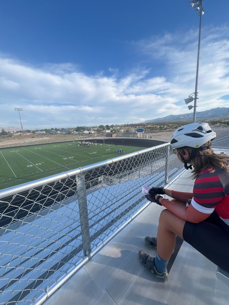 Our place for the night was White Pine County High School. It was so surreal sprawling out in the empty lunch hall of a high school to lodge for a night. For many of us, it had been years since we had stepped inside a high school. Our hosts had ordered us pizza, which was super nice of them. Sarah was doing better, but was a bit sleepy when we arrived. Good thing we all weren’t biking tomorrow!