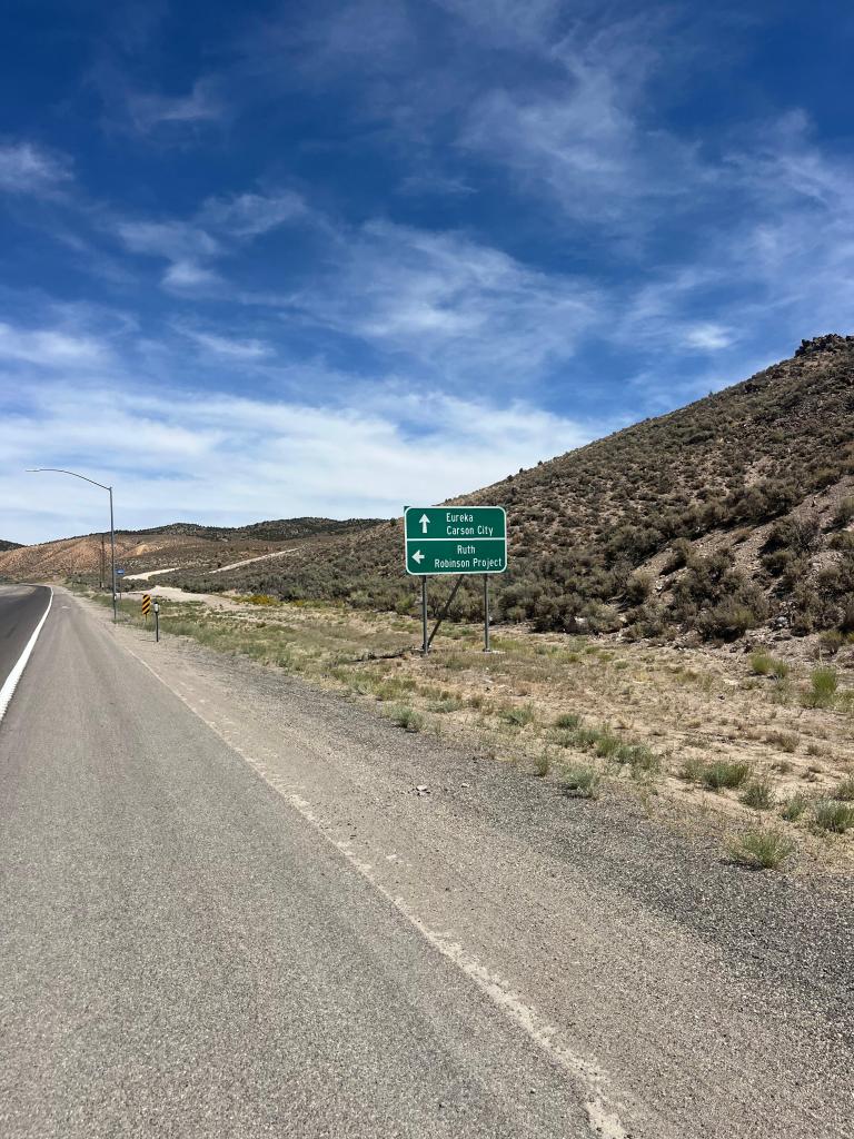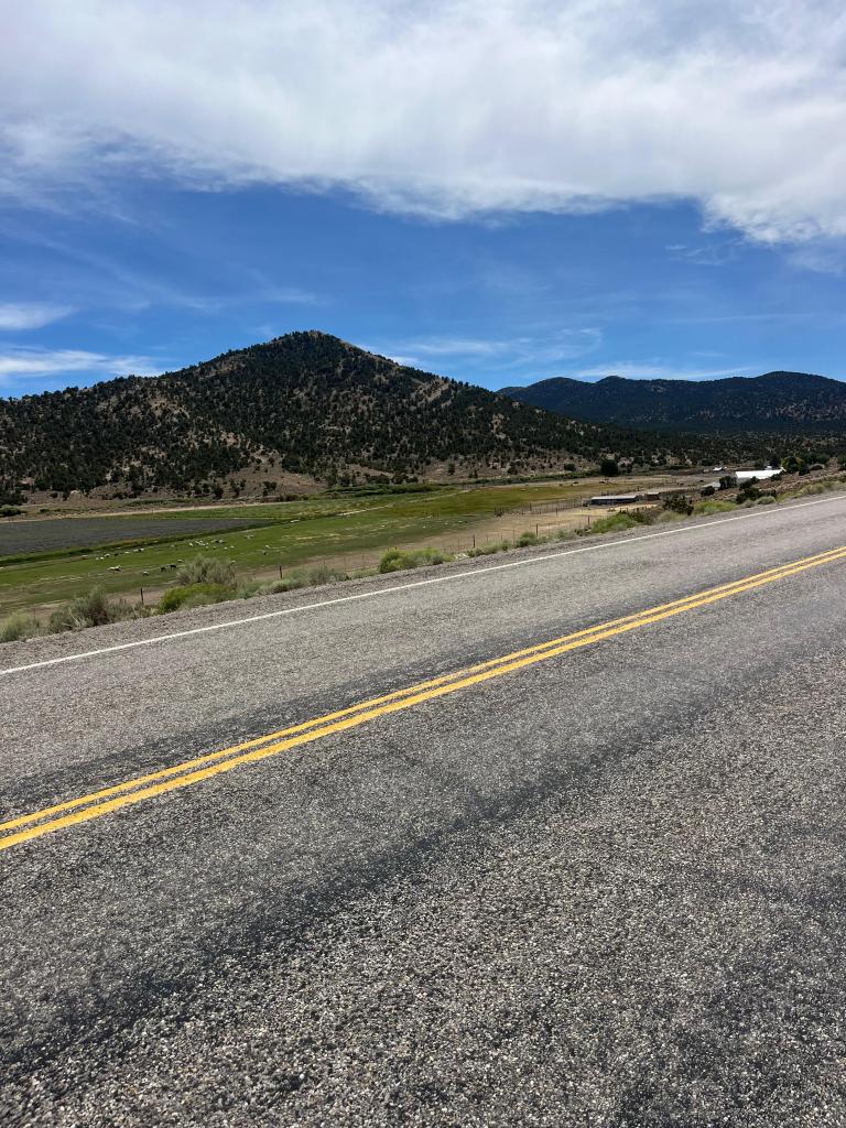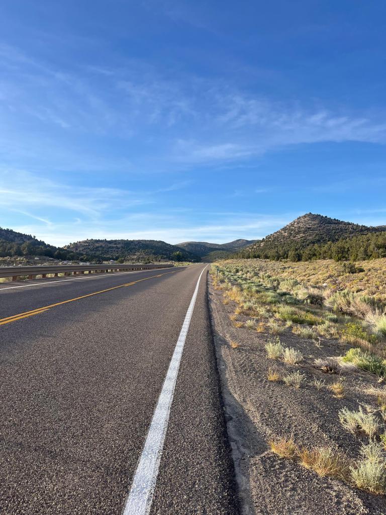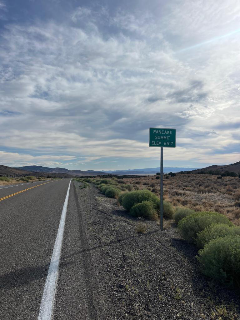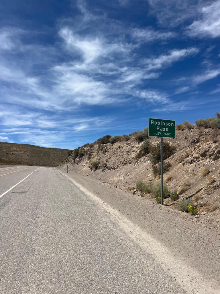 for my non-nevadans (which are probably all of you besides my family and friends—hello!), the title of this blog is a reference to nevada’s state anthem, “home means nevada,” with the first set of lyrics from the chorus going “home means nevada, homes means the hills”! and boy…they were not wrong writing that. pretty much all of our days in nevada have been up-down, up-down, and today was no different. after a decently comfortable climb to the top of robinson pass (elevation 7,607 feet), we reaped the lovely reward that is the downhill to cruise into rest stop 2, which was the side of the road (like usual these days). while i hadn’t wanted to get my hopes too high, by this point i was confident in saying that the winds today were MUCH better than my 1st day back home. the wind is probably my biggest mood-killer: the turbulent ride into nevada a few days prior made slow climbs even more painfully drawn out, turned speedy, fun descents into tedious balancing acts courtesy of some intense cross-wind and gust action, and constrained flat sections into a constant, agonizingly slow push against an invisible wall. if my vocabulary doesn’t give a good enough indication, i was NOT a happy camper.