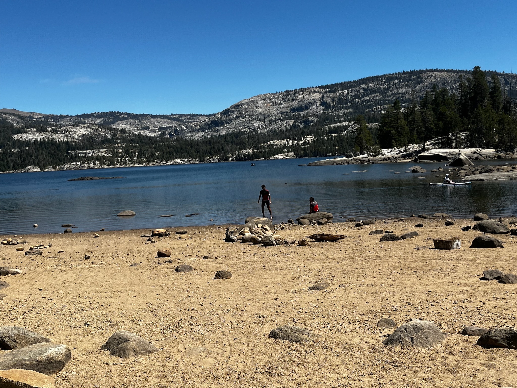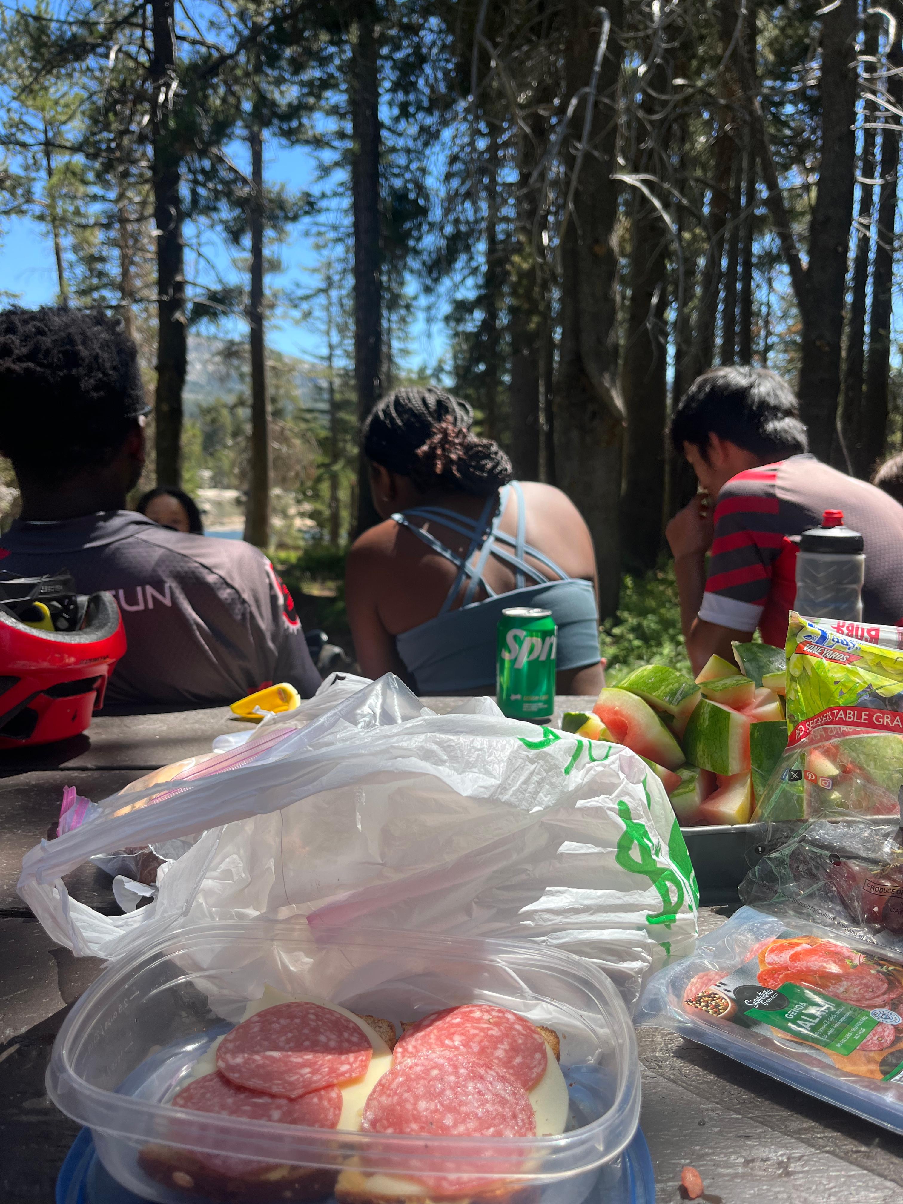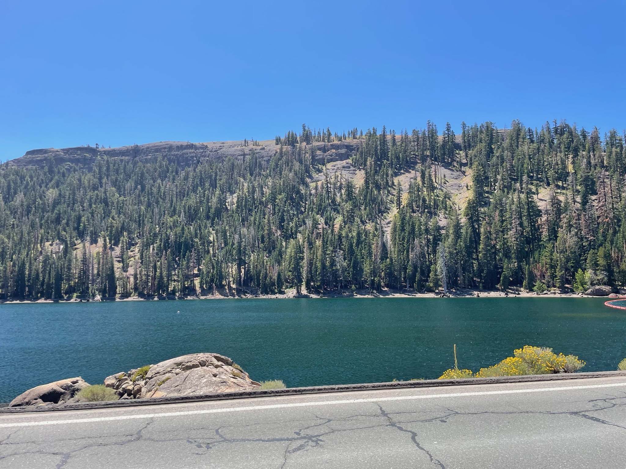 The descent sped us along to rest stop 5, another lake. This one was in Sly Park Recreation Area, and had a small fee for vehicles, so we stopped at the parking lot near the entrance. Here, Joseph pulled out his final ace up his sleeve in his best driver ever campaign. He’d set out cups, orange and apple juices, and dry ice! We drank dry ice cooled juices and marveled at Joseph’s driver performance. Forget best driver day of Spokes ’25, today might have inducted Joseph into the all-time Spokes driving hall of fame.
