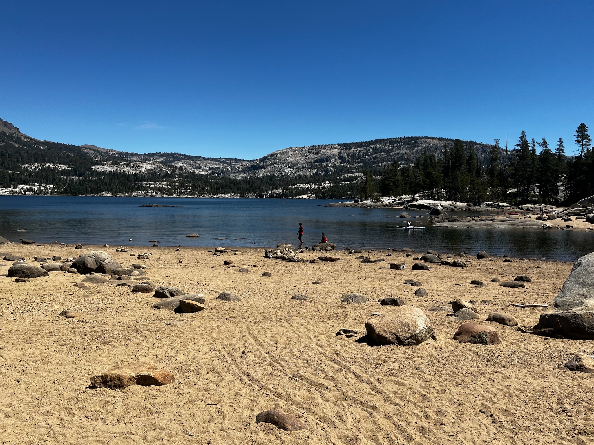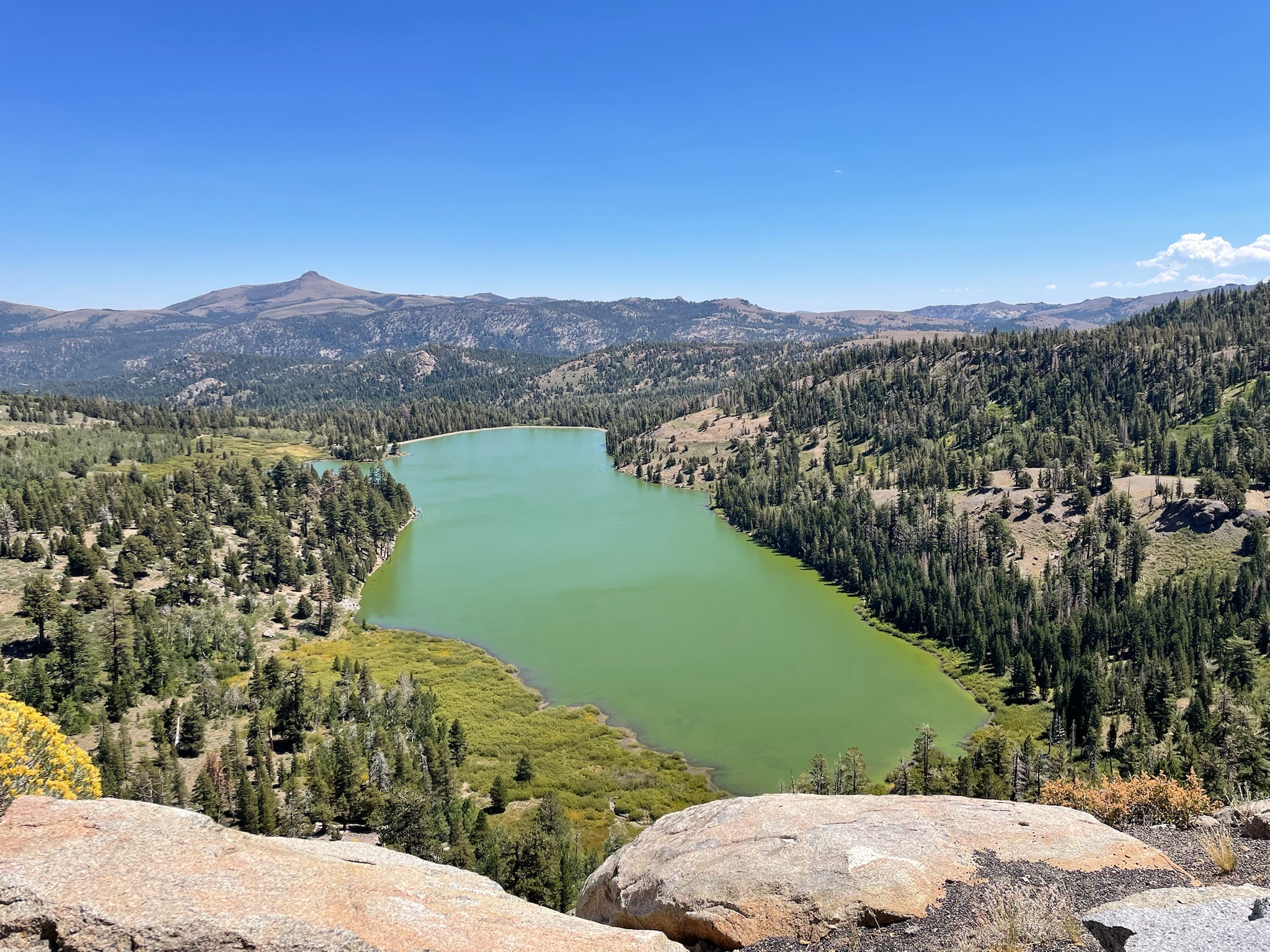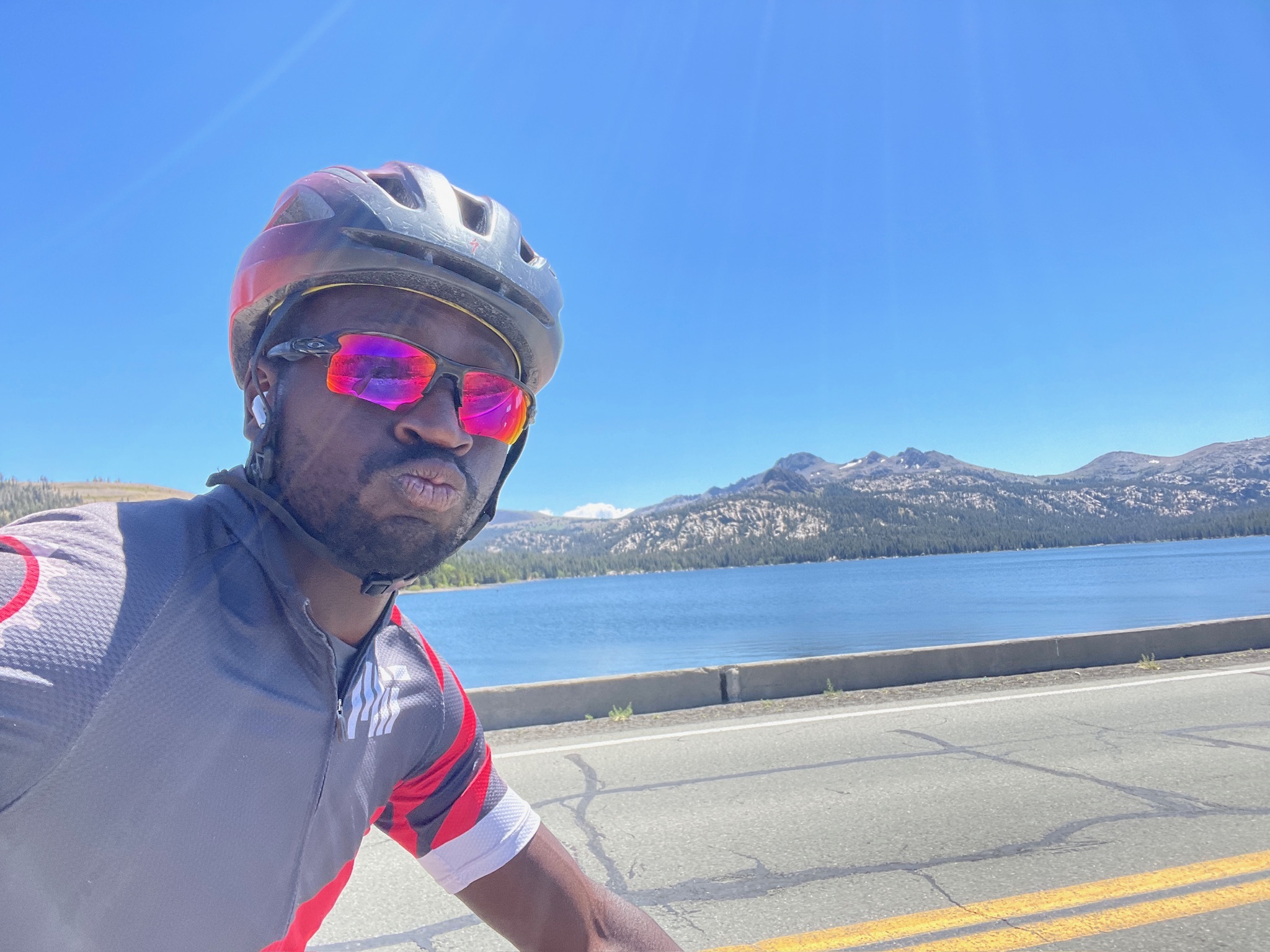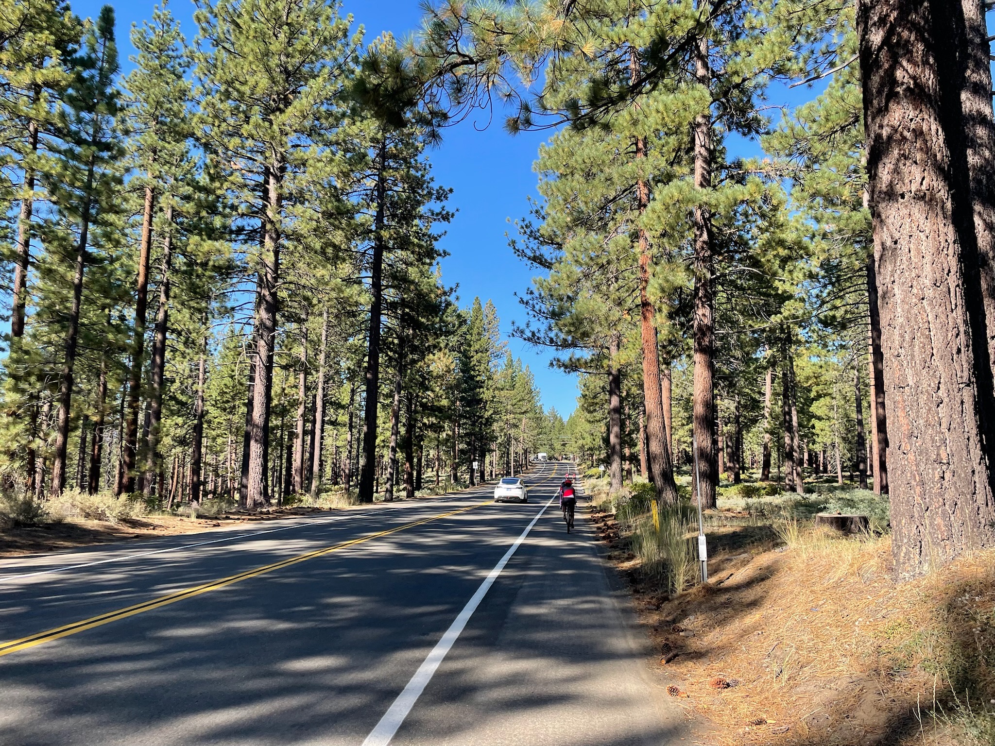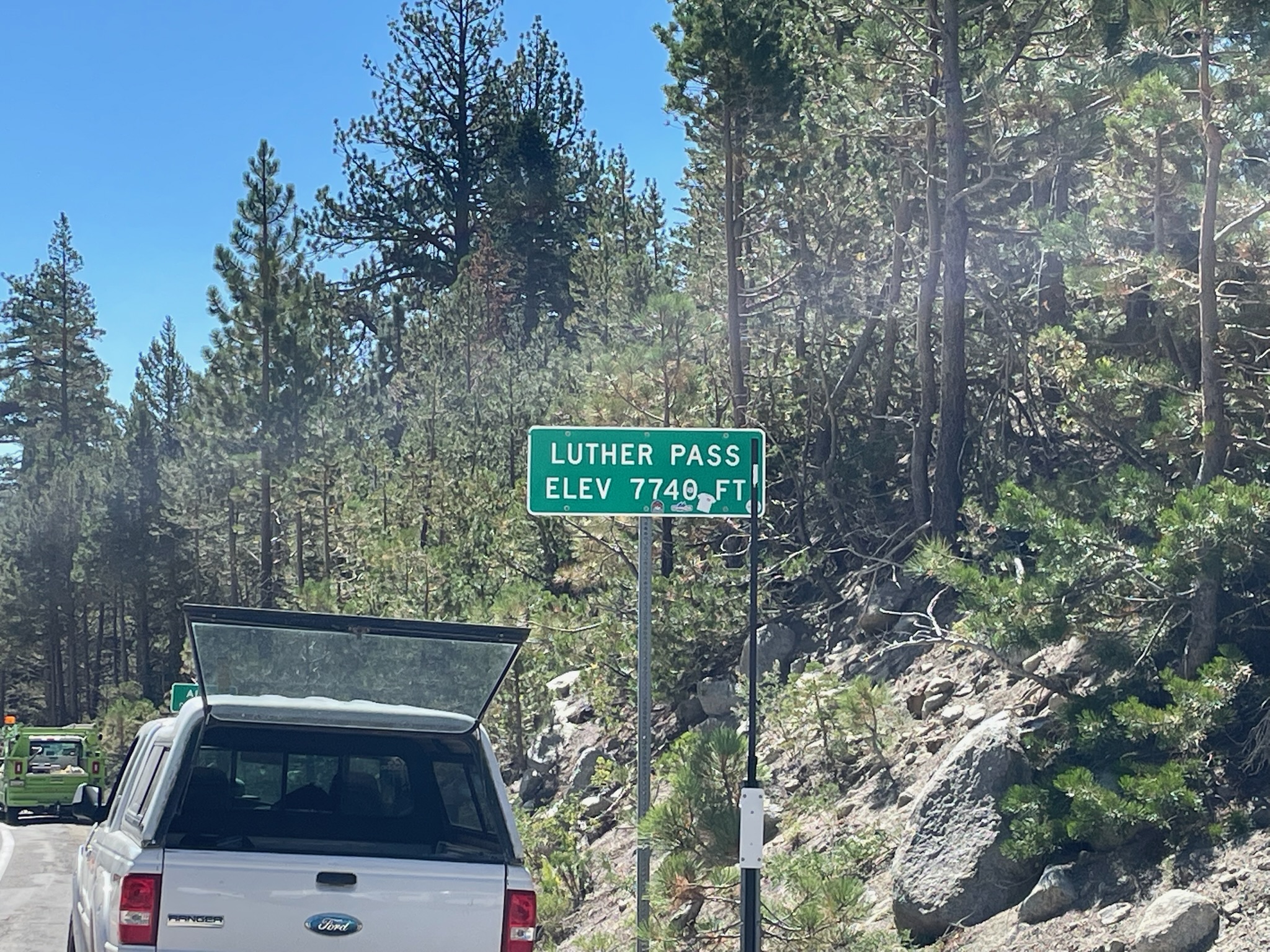 Joseph had let us know that after packing up the car (which is always a bit slower after a rest day) he was going to go shopping in South Lake Tahoe and he might miss rest stop 1. We reached rest stop 1 and everyone else had forged on, so after a quick bathroom break, Greta, Sarah, and I continued up the first climb of the day.