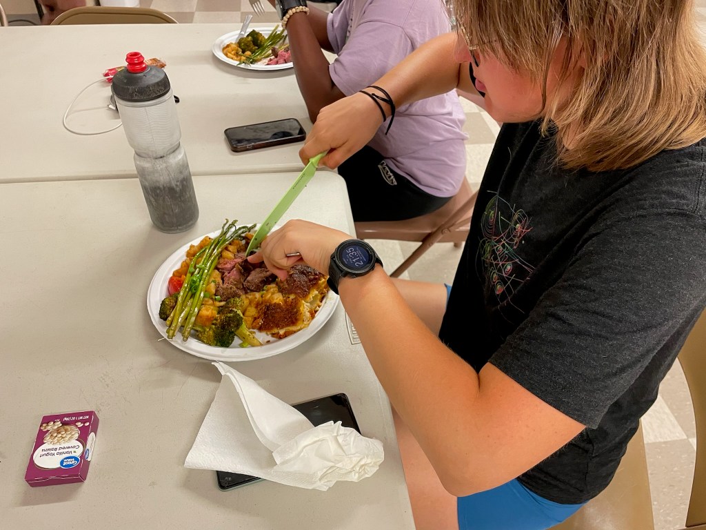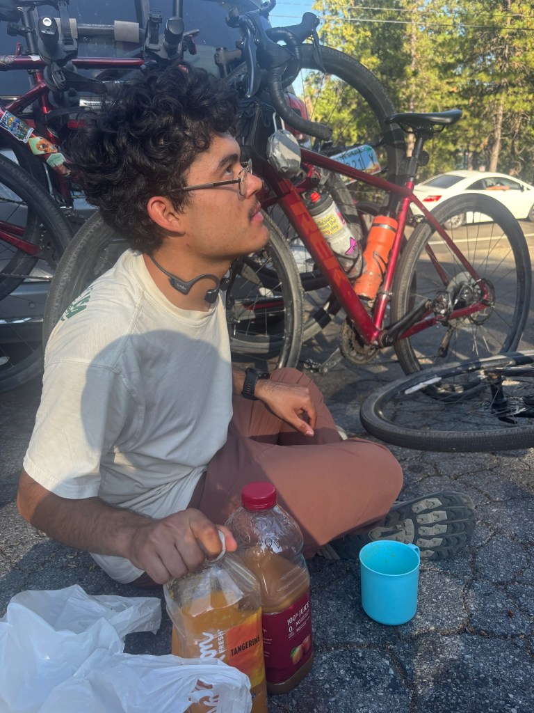 The dilly dally club arrived at the church hosting us in Placerville just as the sun was setting. Dinner preparation was in full swing. I knocked out on one of the pews (oops). As always, we ate together and reveled in each other’s company. Dinner with the Spokies — at one point new, foreign, and a given that stretched into the far, distant future — now was all too familiar, joyous, cozy, yet concluding, enumerated by the days in the week we have left, a tradition fated to come to an end. The dilly dally club rehashed our conversation from earlier and we discussed merch, tattoos, and ways we wanted to honor this journey when we ride across the Golden Gate Bridge in San Francisco and finish Spokes 2025.