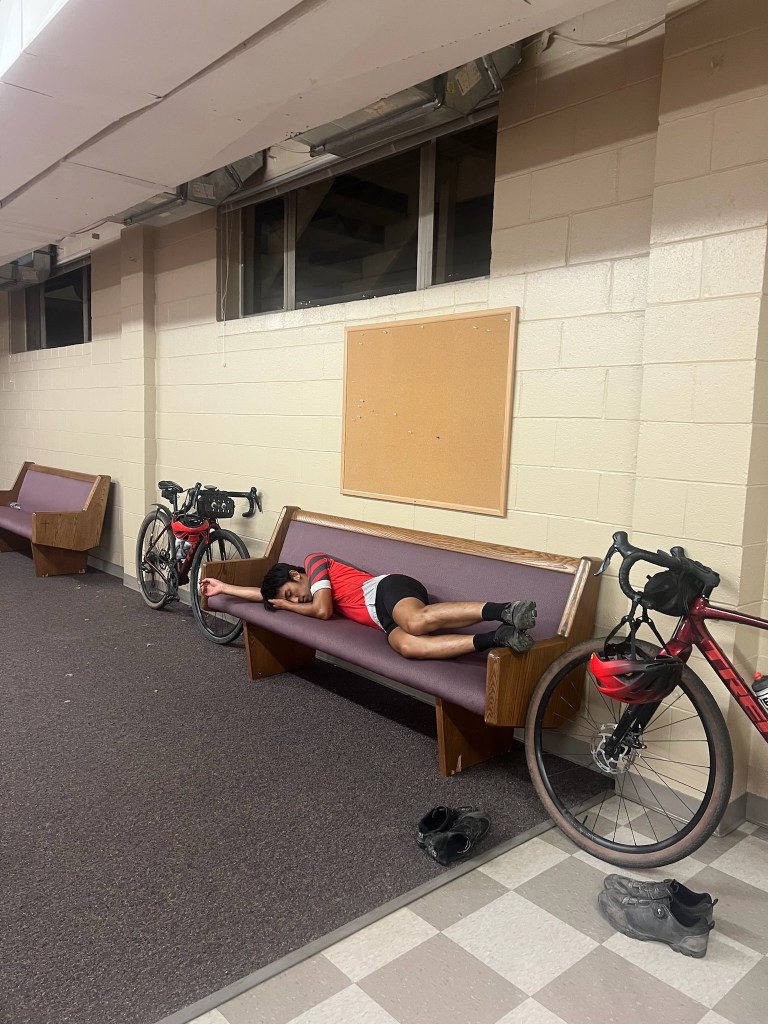 We all agreed we should simply omit these items from the shopping haul at rest stop 3 and Ruth and Ramona would never have to know. (The rest of us except for Tian had been complicit in the great Blue Machine disappearing act, so it was kind of a glass house type of situation). Sorry Ruth and Ramona. And sorry you’re finding out this way. You snooze bike faster you lose 🤷♂️