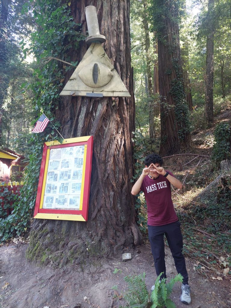 The beginning of the drive we talked, running on adrenaline from the logistics and goodbyes. But the tired caught up to us. Joseph dosed off. And Charles also caught his eyes becoming heavy. So they swapped and Joseph continued the driving, powered by a gas station milkshake. We made a very important stop by the Bill Cypher statue. For those who are not Gravity Falls fans, after the show ended there was a treasure hunt for this statue depicting the main villain who (spoilers!!!) by the end was petrified into this statue.