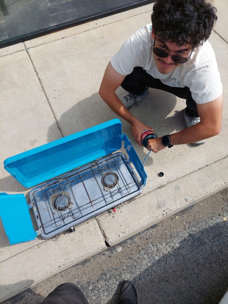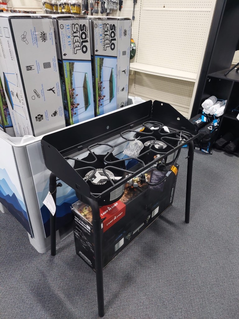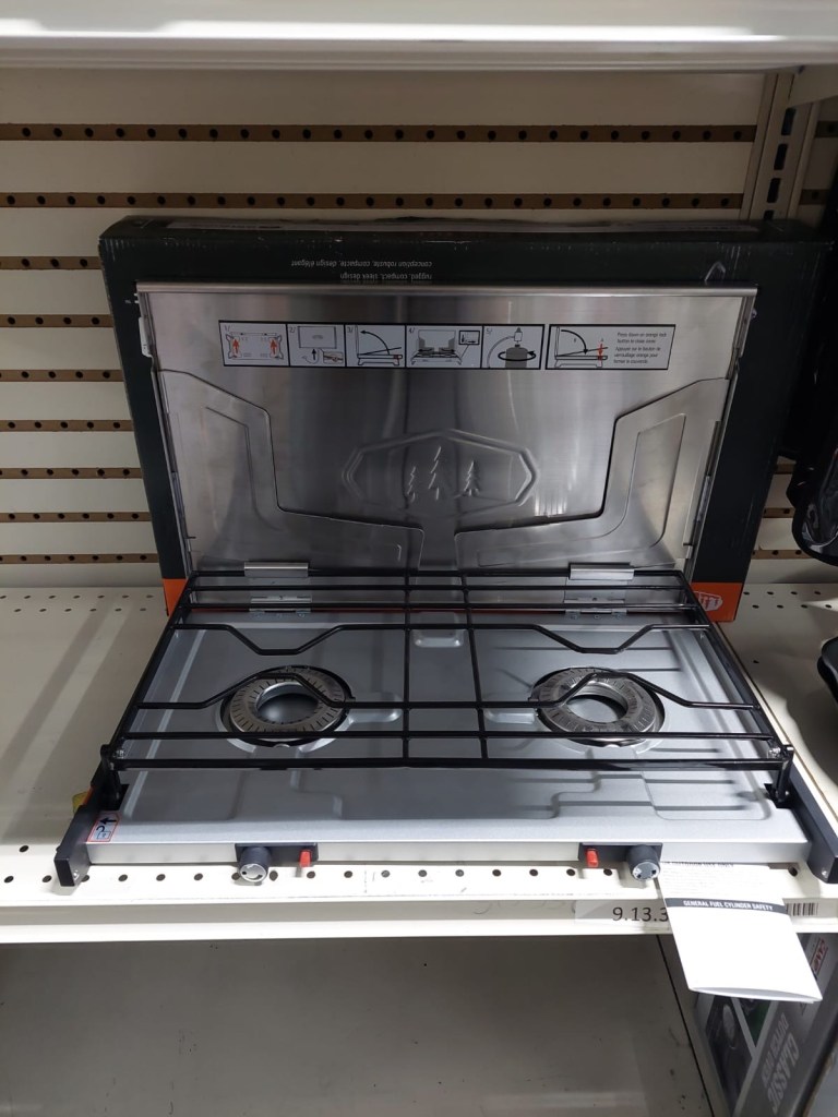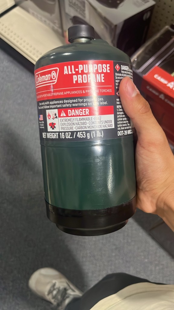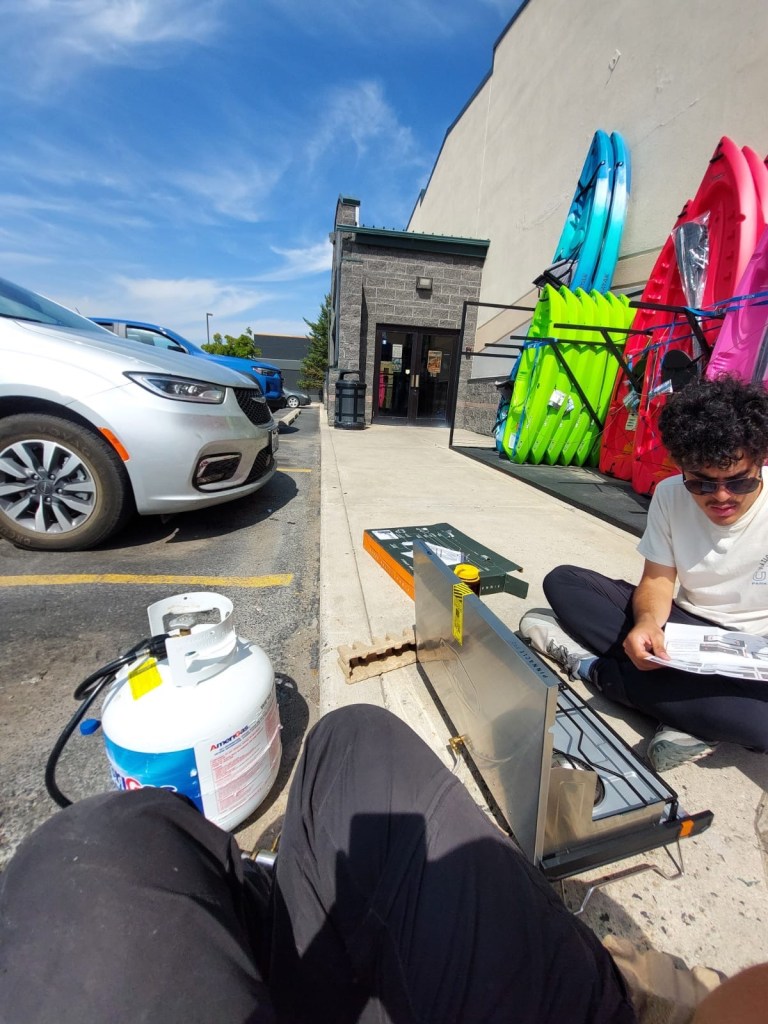 I mean, at this point we had independently swapped out every component of our setup, and we still couldn’t figure out what was wrong. Even worse, we had spent well over two hours of precious daylight trying to fix this. We decided to give up on the large propane tank. This felt like admitting defeat, but admittedly we had been too stubborn to just cut our losses and try the only thing that we had seen did work. If we had just accepted the nice couple at Logan Pass’s camping propane tank, we could’ve avoided this headache. As the saying goes (with some liberty), the best time to make the switch was yesterday, the next best time to make the switch is today… So, we went back inside to return the new stove and bought our own camping propane tank. We try it outside to make sure it works, and of course, it worked beautifully.