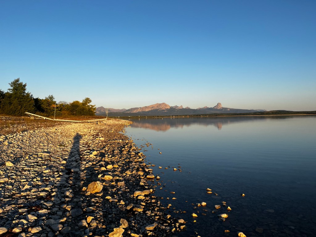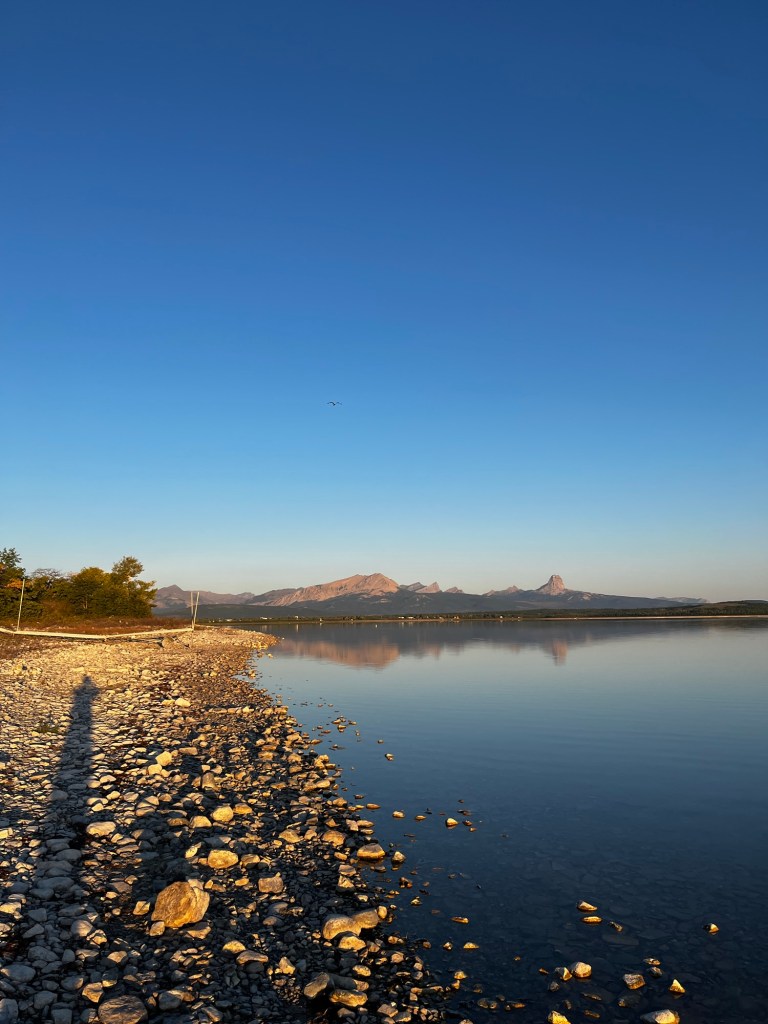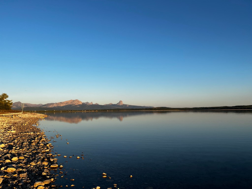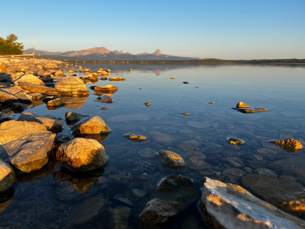 I woke up this morning in Duck Lake campground, tucked inside the Blackfeet Indian Reservation. What a tranquil place to be. The air is crisp and the only sounds I hear are those of nature. We couldn’t really see the lake the night before, so the first thing me and Ramona did was walk out onto its shore. The views were spectacular. We could see the mountains of Glacier National Park nearby, perfectly reflected by this clear lake’s surface. It really is a marvel of engineering that a road could cross those mountains. As much as I wanted to enjoy the views, however, time waits for no one. We had a long drive today, as per usual. We had to make it to Lizard Creek Campground, inside of Grand Teton National Park in Wyoming. To get there, we had to cross Montana and go through Yellowstone National Park. We wanted to see Yellowstone before dark, which meant that we had to get on the road early.