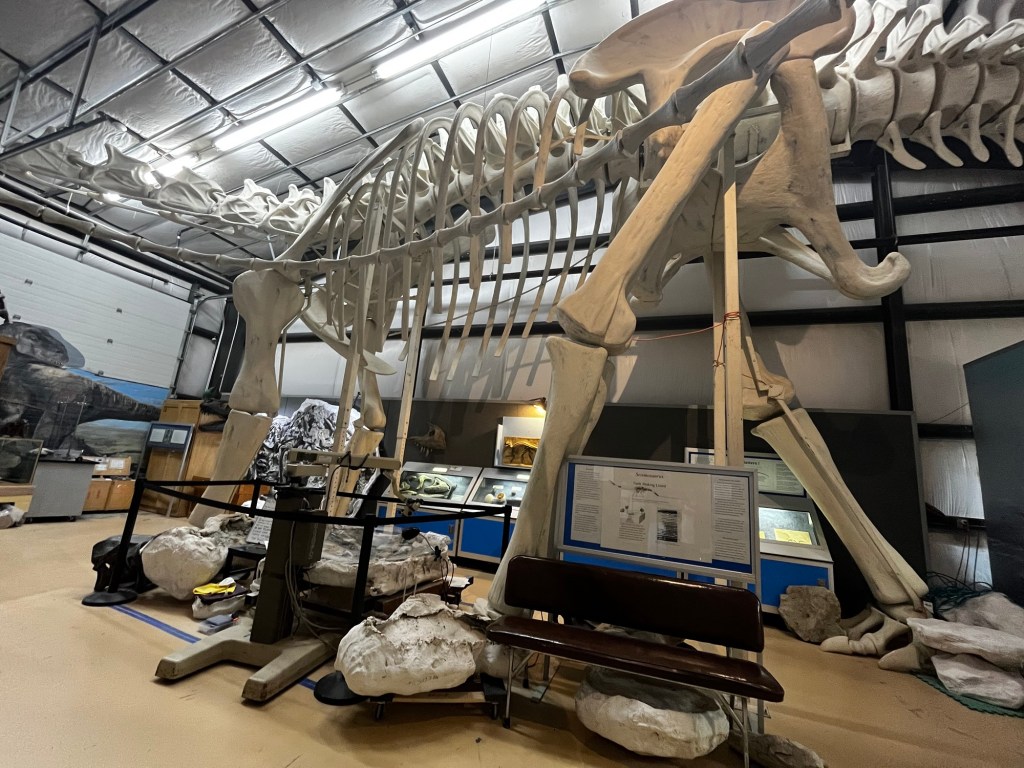 We were starting to get into a routine with this camping business. We would usually try to eat something quick for breakfast like yogurt, then quickly pack up our tent and get on the road, trying to make it to the nearest town quickly. I wanted my morning drink, at a cafe, and we also just needed a place with running water. Duck Lake Campground was primitive, meaning that there was no running water. We had gotten used to this style of camping already in Utah, but it definitely calls for some good planning. This time, we stopped in Browning, the headquarters of the Blackfeet Reservation. As with many other reservations, there were a lot of casinos in this small town. In fact, the cafe that we ended up going to was even located inside of a casino! We continued on, following US Route 89’s path straight up and over many hills. Upon crossing Glacier National Park, we were well and truly back into the Great Plains, but it looked a lot wetter than Western Kansas. Eventually, we saw signs for The Montana Dinosaur Center, and given there wasn’t much else to see in this part of Montana (and the fact we needed a bathroom), we decided to check it out. We contemplated buying a ticket to see the exhibit for a while, then decided that dinosaurs were cool and went inside. We spent a surprisingly long amount of time inside, marveling at all of the molds of various dinosaurs, a real T-Rex bone that you could touch, and even an active archeological excavation. We definitely enjoyed this museum in the middle of nowhere, and the guy working at the front desk was super passionate about his work too. Highly recommend a quick stop if you are ever in this part of Montana.