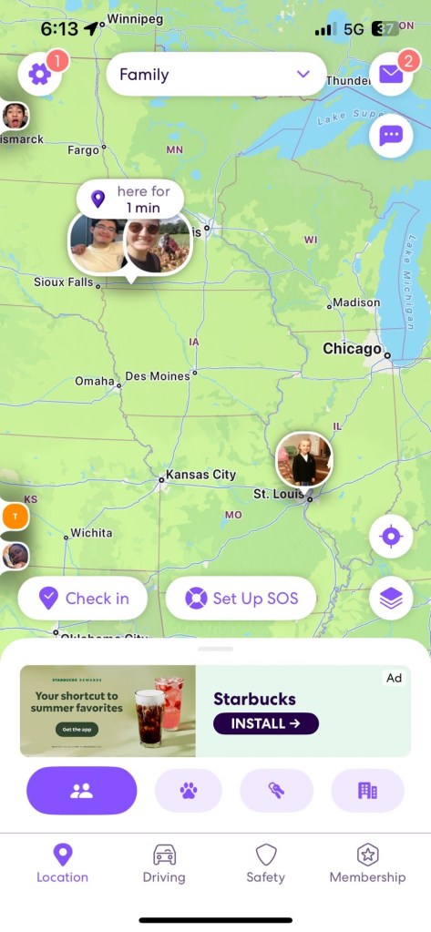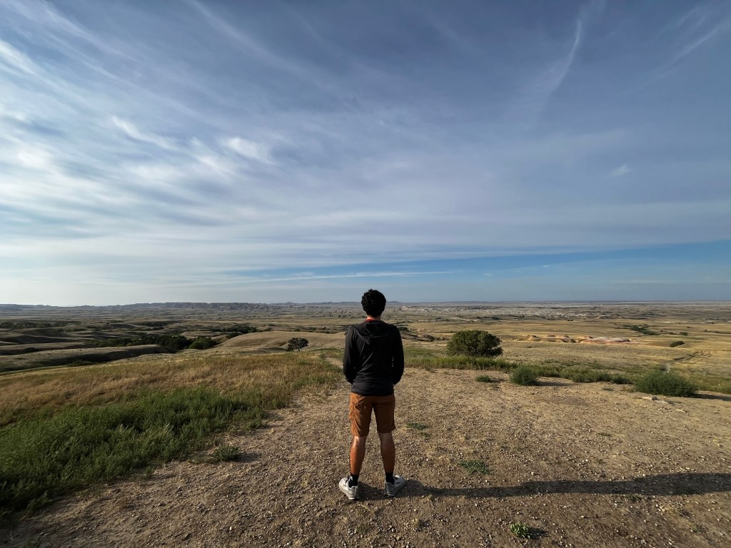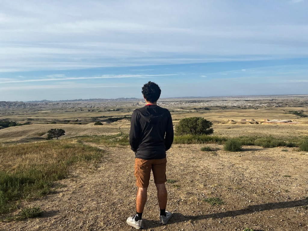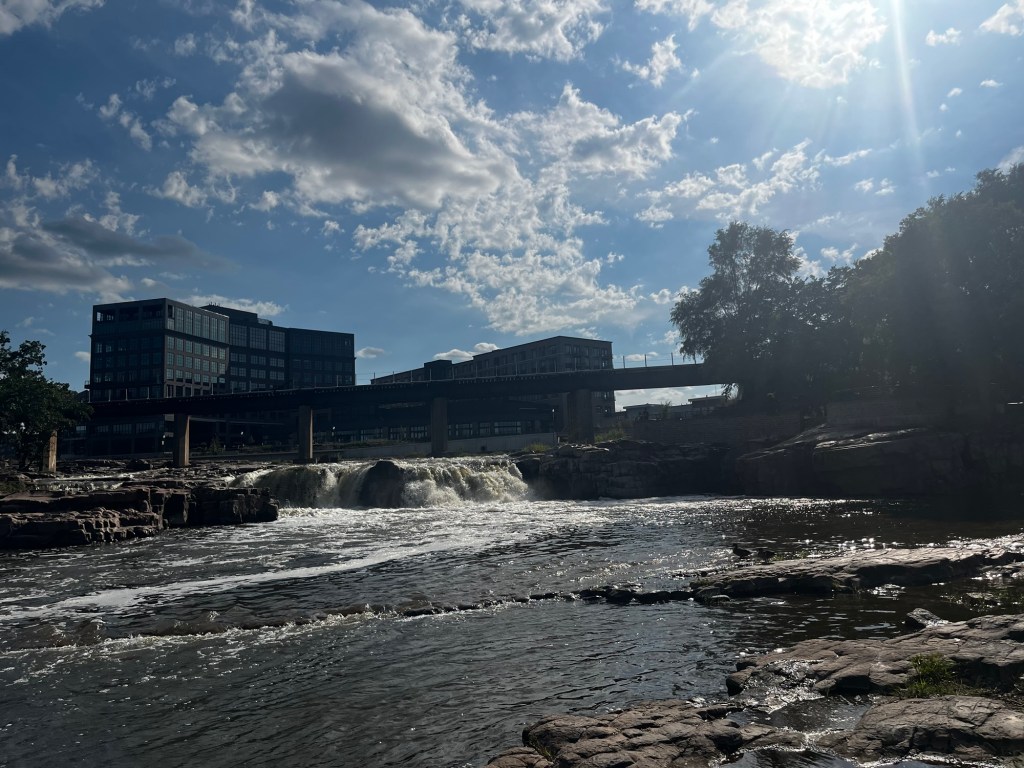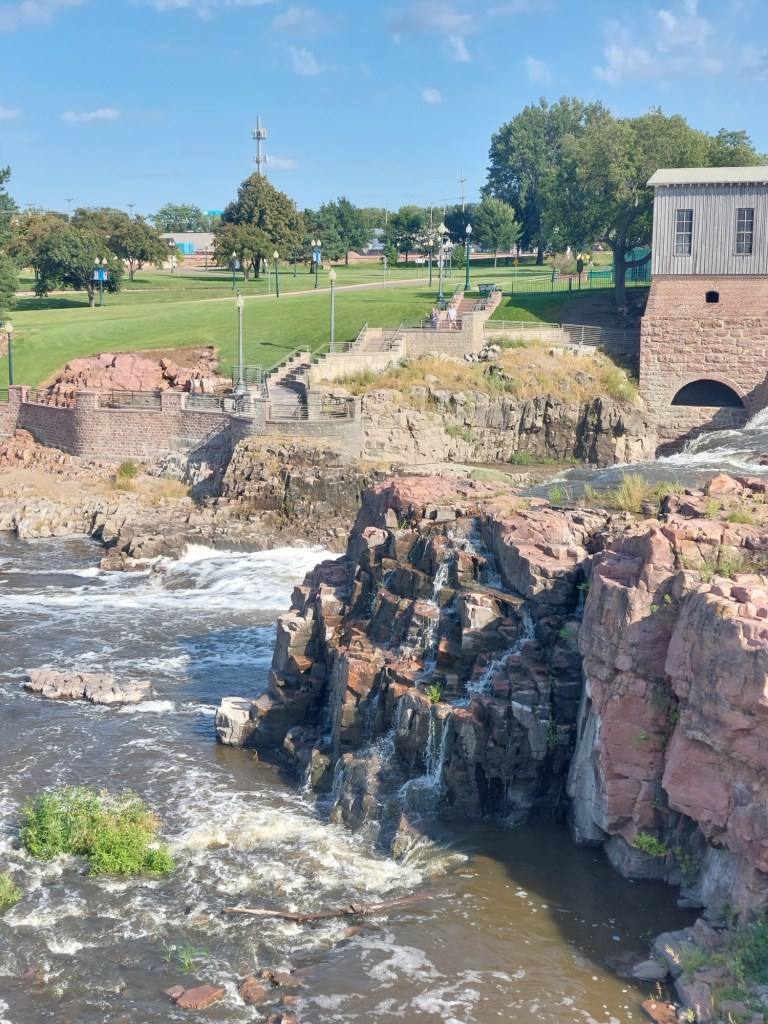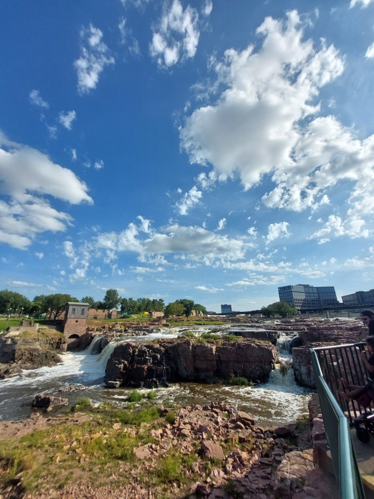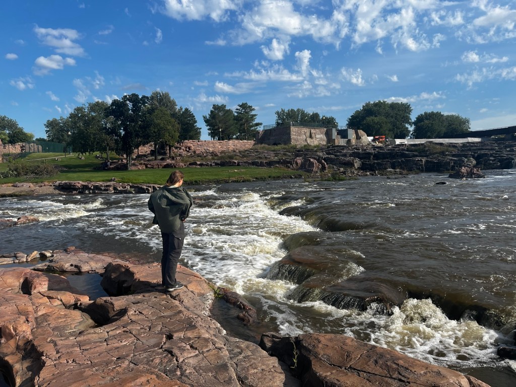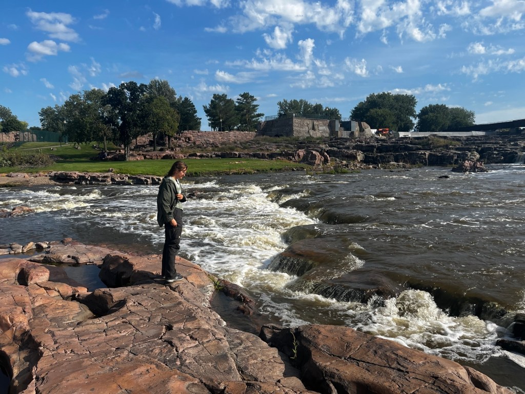 We reached the Eastern end of Badlands National Park, and with it the end of the “fun” of this road trip. I made this route prioritizing seeing the beauty of the northwest, with a time constraint of 10 days to make it to Boston. This meant that, in order to have time to enjoy the northwest, I had us plow through the Midwest on I-90. We left Badlands and got directly onto I-90. This marked the start of my hellish journey across the second half of the country. Three days on I-90, with long hours and few planned stops. All to make it back home. Needless to say, this quickly became boring. Even more than before, Ramona and I passed the time yapping about random things, planning impromptu stops, and finally starting to draft our blogs. The stop of biggest note was Sioux Falls, SD. The river flowing through the middle of the city and its accompanying falls were surprisingly scenic. As we were driving on this day, Sarah was flying back from Las Vegas. She sent us her location during her layover in St. Louis, so close yet so far.