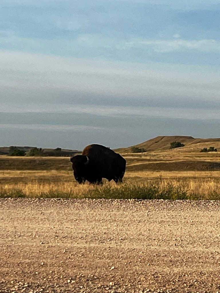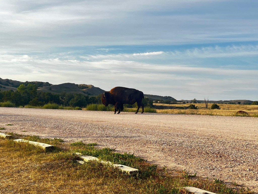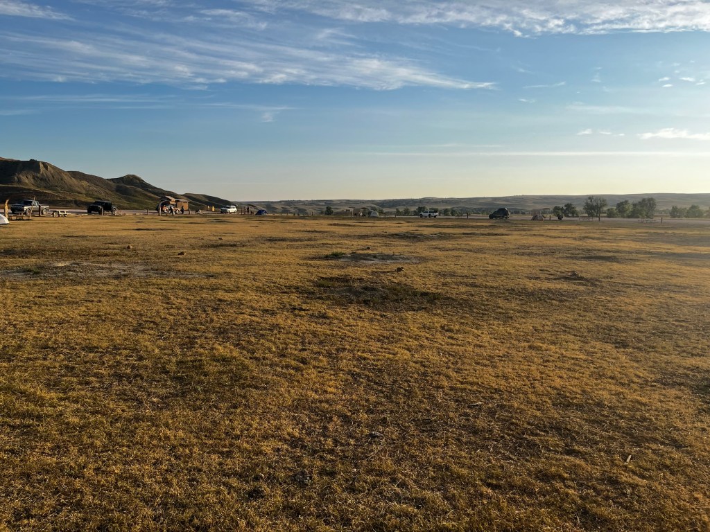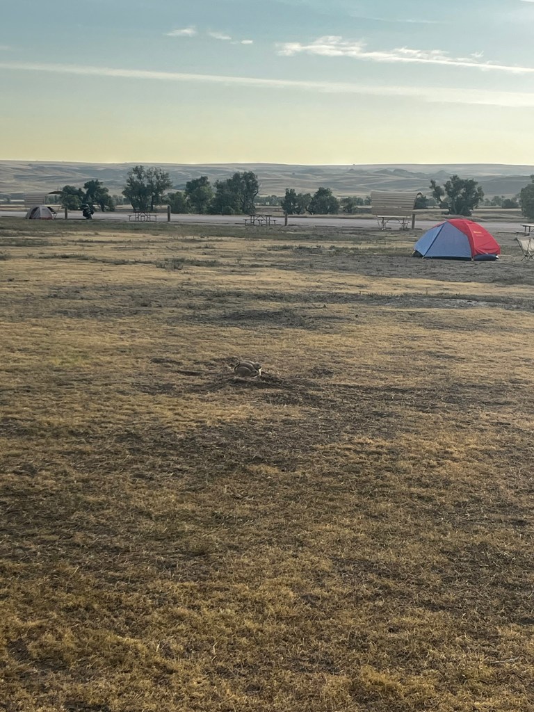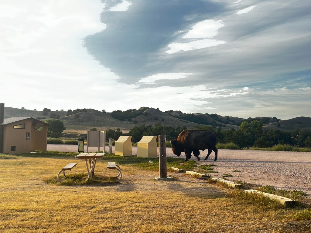 I woke up in the wilderness. Well, of course, right? I was in the Sage Creek Wilderness, after all. However, I can say that this is one of the only times I felt like I wasn’t in man’s world. When I left my tent, I was greeted by a lone bison just across the street. It wasn’t until this moment that I realized how big bison are. Bulls have nothing on these megafaunas. As we started to pack up and prepare breakfast, two more appeared and they got scarily close. Bison are not exactly friendly animals; they will attack and kill if provoked. Thankfully, they seemed unbothered by our presence. In the distance, a lone coyote scurried across the landscape, keeping its distance from the campsite. In the middle of the campground loop, there was a prairie dog town buzzing with activity. Wildlife had been strangely absent for most of Spokes, despite us getting to out pretty far from civilization at times. Maybe it’s just the nature of road biking. This morning sure was making up for that deficiency.
