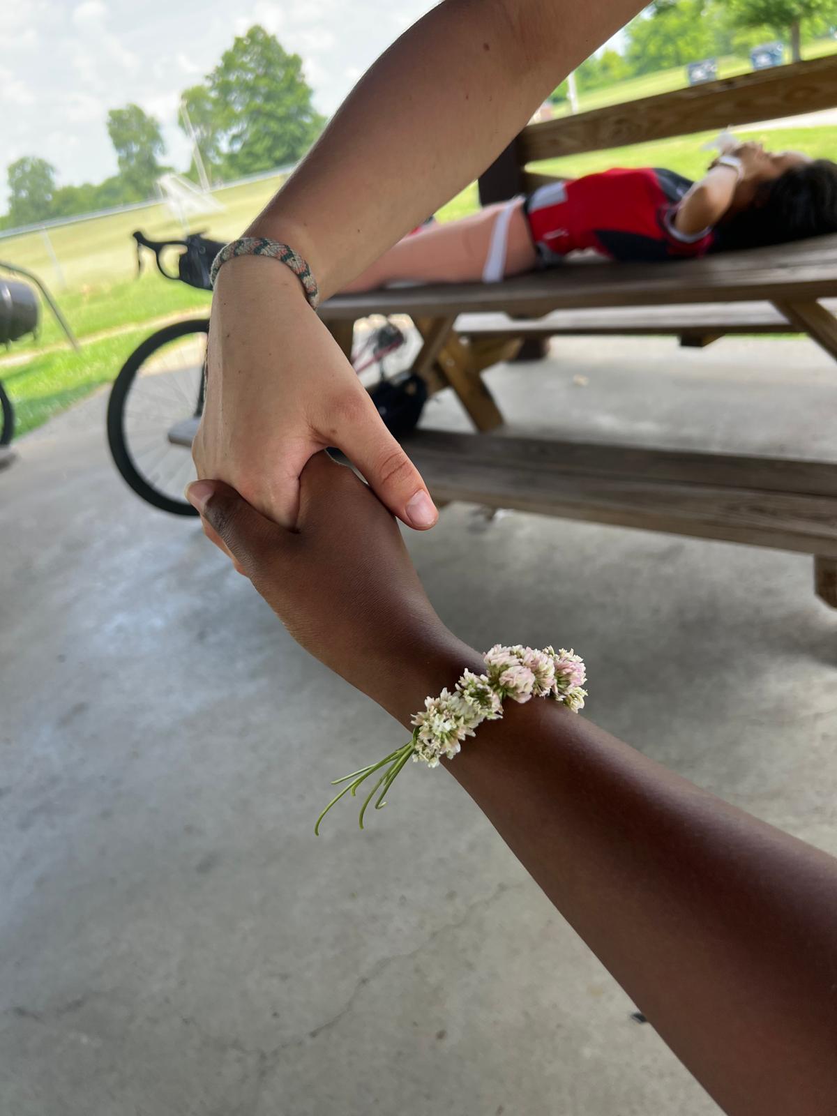 At rest stop 2, a trusty Dollar General, Ramona and I pull up to a loud POP. Charles is trying out a new plug kit combo, and it apparently burst at 45 PSI right as we arrive. Ramona is excited that she finally gets to witness the (attempted) repair of our worst bike damage yet, so while Sarah, Joseph, and Greta leave, I dutifully wait by Ramona for another half hour (spoiler alert: I do not see Ishaq the entire ride, he’s too far ahead). We come to the conclusion that Charles should in fact not bike for the rest of the day, and that he should try to fill his initially tubeless tire with a tube, which will supposedly provide an impermanent but stable solution to the screw issue. I suggest to Ramona that Charles ride my bike tomorrow, since I’m driving and he has pretty short legs, but this great solution is ignored.