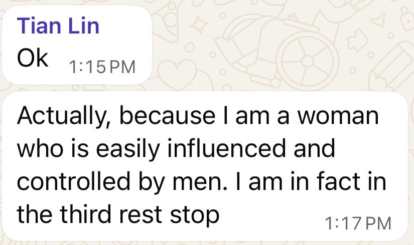 A bit into the ride, Ramona receives a phone call. She initially tries to talk through the wind, but pulls over once she realizes she can’t hear anything. I dutifully pull over too, while Sarah and Joseph abandon us. It sounds kind of urgent, and I realize what the fuss is about as soon as Charles sends a picture to the group chat.