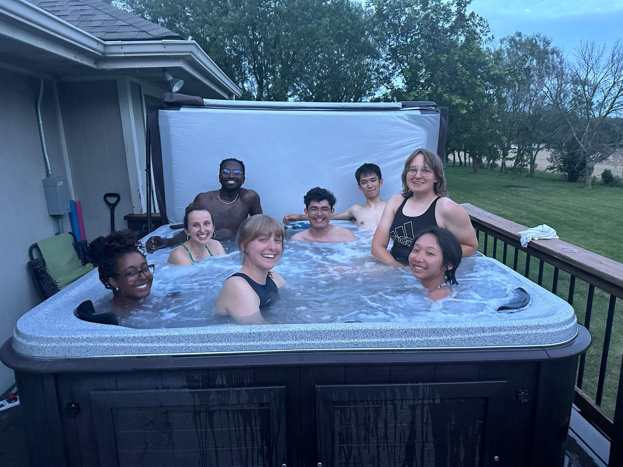 After Charles and Ishaq return from grocery shopping, we start making dinner. Music is blasting (from a speaker😔) and spirits are high. The sun is setting, the sky is beautiful, and the fireflies come out.
