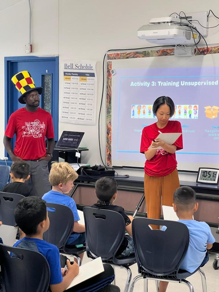 Ishaq and I have a machine learning festival workshop that we perfected over the past seven festivals. At first, other Spokies were skeptical about the fun-ness and hands-on nature of our class; however, we adapted our workshop to be engaging for all ages, from kindergarteners to highschoolers. We started each session with a presentation of how AI is present in our lives through ChatGPT, Snapchat filters, and self-driving cars. Then, we broke down machine learning into three simple steps: data, algorithm, and decisions. The majority of our class included four amazing activities/games courtesy of Ishaq and me.