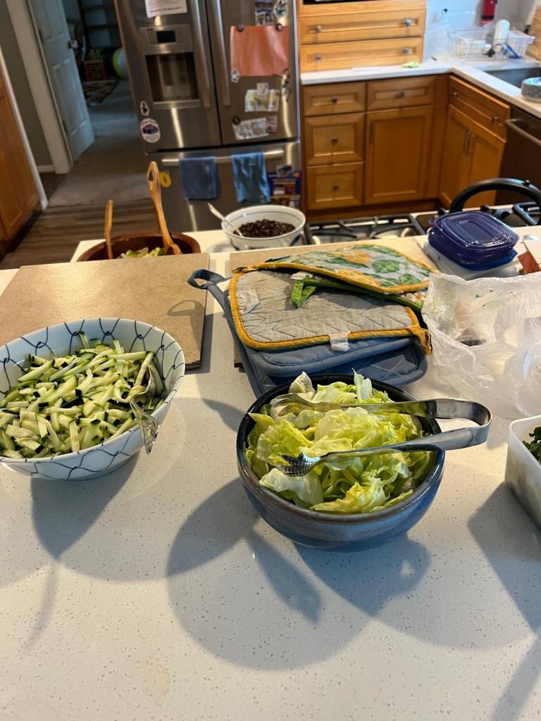Afterwards, we let Charles and Ruth work on their 3d prints, which always take longer than expected and this time faced some extra difficulty due to a corrupted SD card (an ordeal that extended into the next day, respect to Charles for not giving up on any of the prints!) And we left Greta with them to blog. The rest were shuttled back to the high school. Joseph and Sarah went to do laundry (and checked out a cafe too I think?). I was going to join a meeting, but due to my poor mental math abilities, missed it by an hour. I did some other work, until the people left at the library got back. Me and Charles (who was awarding himself for finishing the learning festival by procrastinating on his blogs) joined Ishaq for the grocery store to pick up the ingredients for a Thai green curry and some other red type of curry. The grocery store was actually huge and very well stocked, we got all the ingredients, found a basil with all the roots and contemplated making it a Spokes pet and got a huge melon. Then we got to cooking. Ruth also made a crazy amount of sandwiches for everyone for the ride tomorrow.