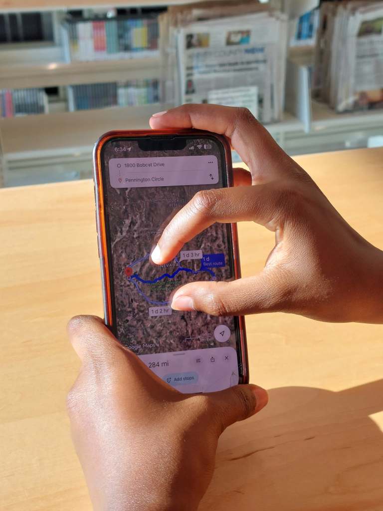 We woke up and left the high school for the library, only 15 or so minutes later than planned. The library, across the street from the middle school, had a nice lawn and a pond next to it. We made it there just when it opened and set up half in a conference room and half outside. This was definitely one of the smaller learning festivals with around 12? kids and one adult. I always like working with only a few kids in a group, since I can listen to them more and ask more questions, as opposed to making them do things. The adult was a new addition. A retired? special ED teacher, he wanted to join for the classes. This made me even more nervous – a teacher would be there observing me trying my best to teach. But it ended up being completely fine. It was actually really nice to talk to him about the lesson and teaching in general, especially special ED, afterwards. Unexpected, pleasant surprise. The kids were also great! I met multiple people, whose favourite subject in school is math and found out about some teenagers have been dirtbiking since 3 years old. Kind of crazy! (We had passed some tracks for dirtbikes when riding into Ely yesterday, so it checks out. Dirtbiking and mountain biking appear to be common hobbies here.) We ate lunch outside, it was a calm and sunny day.